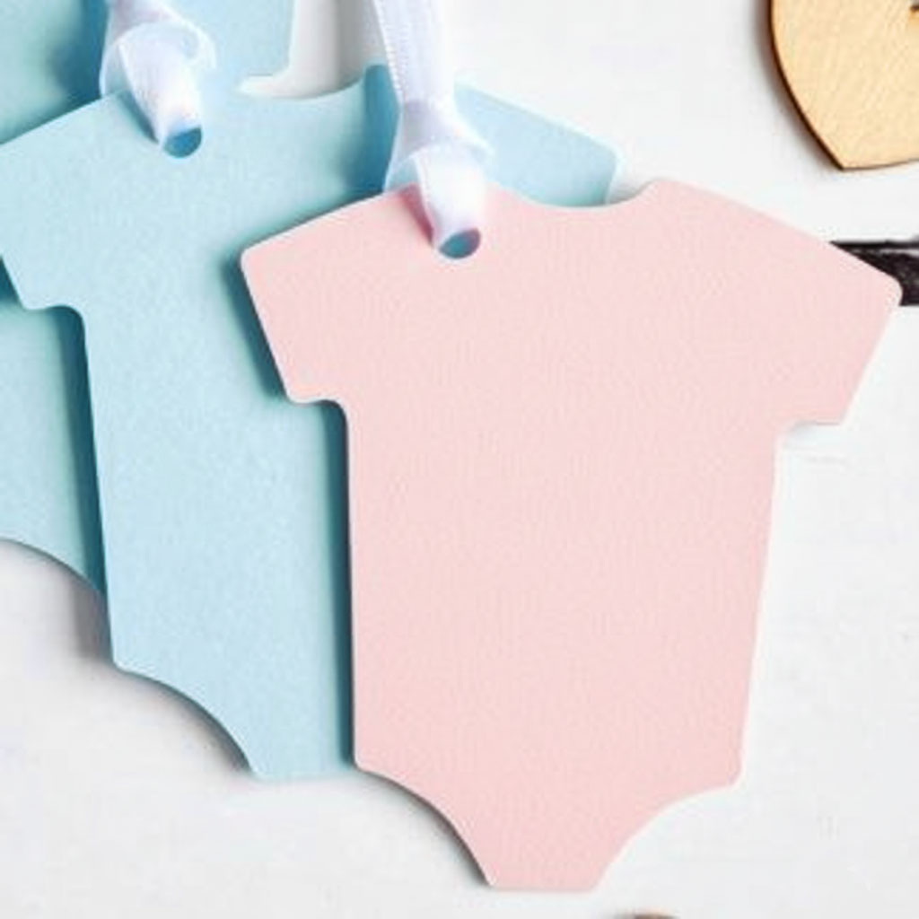 Baby shower, doğum günü, cinsiyet belirleme partisi veya yenidoğan ziyaretleri için hediyeliklerinizi süsleyecek, bebek body (zıbın) şeklinde sevimli etiketler! Pembe ve mavi renk seçenekleriyle kız ve erkek bebekler için mükemmel bir detaydır.